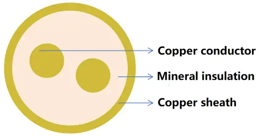 کابل های عایق معدنی از یک هادی مسی، عایق معدنی پودر اکسید منیزیم و غلاف مسی تشکیل شده است. هنگامی که کابل ها در کارخانه هایی که مس در آنها خورنده است استفاده می شود، خارجی ترین لایه پلی وینیل کلرید (PVC) می تواند اضافه شود. در ساختمان‌ها یا مکان‌های زیرزمینی که زیبایی‌شناسی یا دسترسی آسان برای کابل مهم است، می‌توان یک غلاف بیرونی بدون هالوژن و کم دود اضافه کرد.