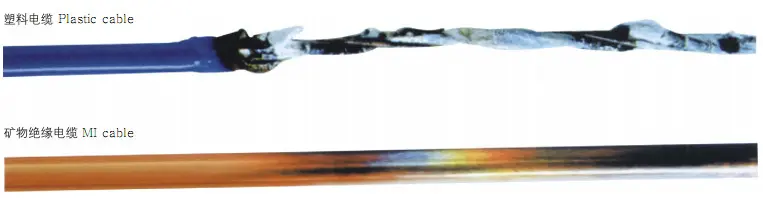 کابل های عایق شده با مواد معدنی عملاً هیچ تغییری پس از آزمایش مقاومت در برابر آتش نشان ندادند. کابل های عایق آلی کربنیزاسیون آشکاری را به نمایش گذاشتند.